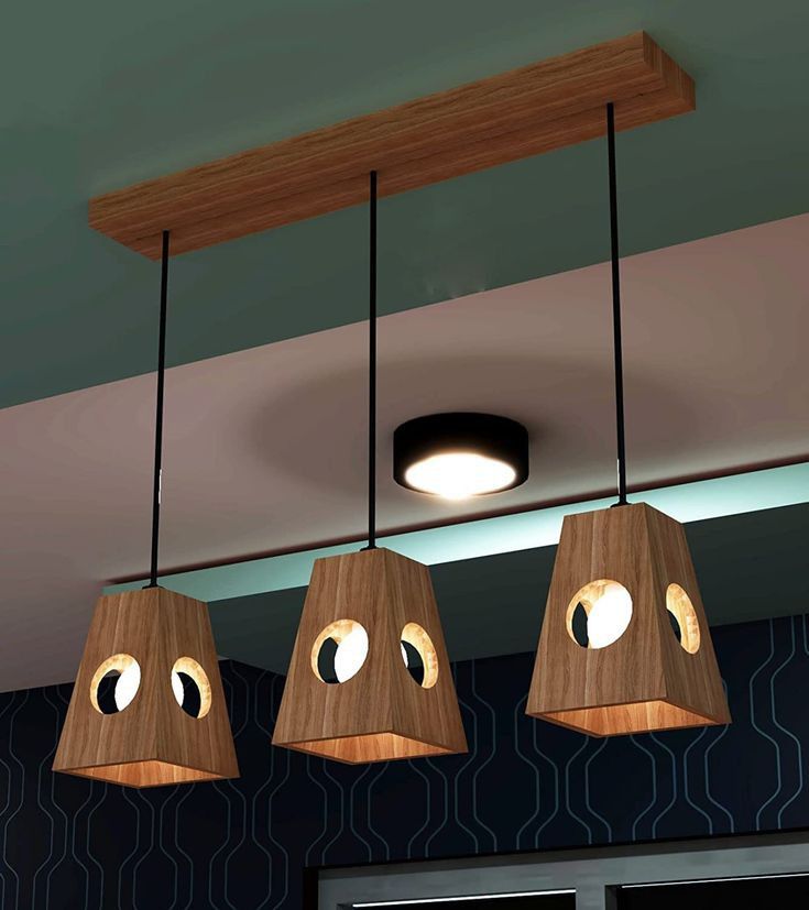 Inicio / Catálogo de Productos / Decoración / Lámparas Colgantes de Madera Lámparas Colgantes de Madera Juego de 3 lámparas colgantes con diseño contemporáneo en madera, incluye sistema eléctrico completo para fácil instalación. COTIZAR SKU: 032 Categoría: Decoración Productos relacionados Repisa Modular de MaderaCOTIZAR